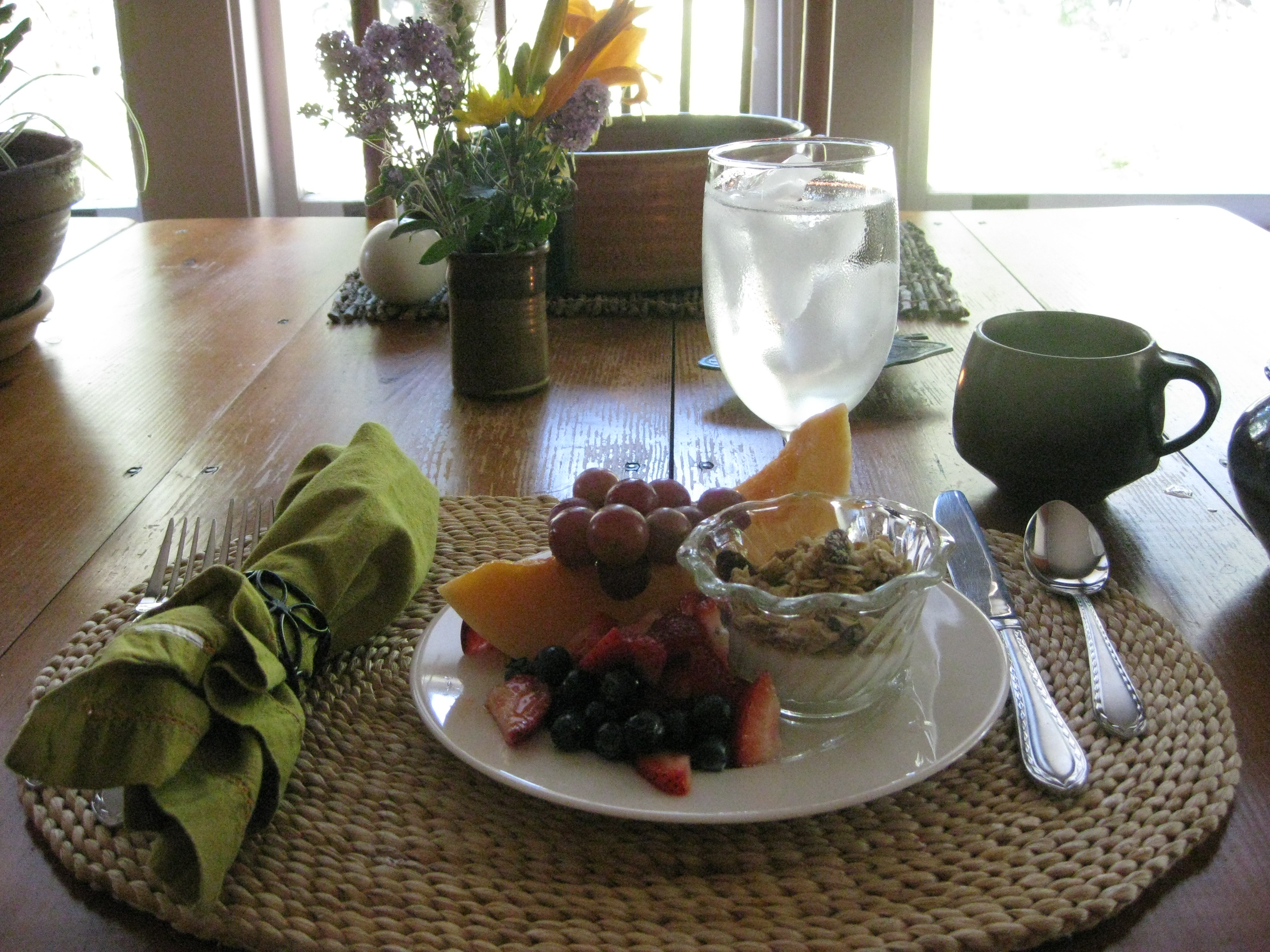 The most important meal of the trip. (Or until I get to Dallas tonight.) This entry was posted on June 26, 2012, in Food!, Hotels and sleepers and tagged b&b, breakfast, Highland Place, Jackson, TN. Bookmark the permalink. Leave a comment One of the top 2 reasons to stay at a bed and breakfast. …with a view of the Chrysler, waiting to drive 9 hours to Dallas. Share this:Share Click to share on X (Opens in new window) X Click to share on Facebook (Opens in new window) Facebook Click to share on Pinterest (Opens in new window) Pinterest Like Loading... Related