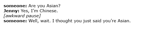 Least favorite thing about the US: Being compared to other Asians. The pressure to be “smart” because of her appearance. And finally, conversations like these – which she’s apparently had repeatedly: