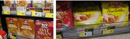 Breakfast has been the biggest problem, so I picked up some things from “International”, where they have labels indicating where all the products are from. I can’t figure out how or why El Paso tortillas would be from the UK.