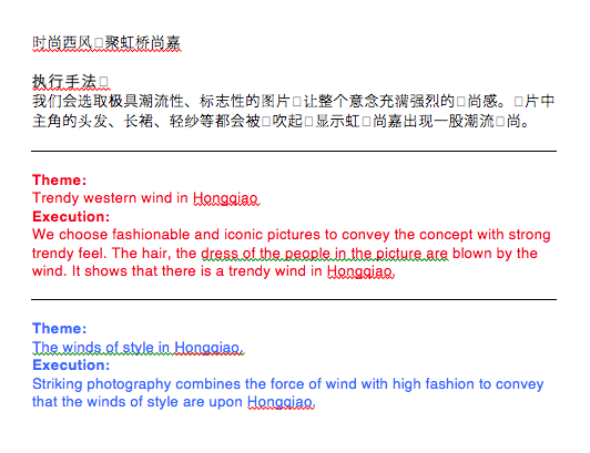 It’s probably only 5% of my day, but I wish it were 100%! Rico, the Chinese copywriter, translates the Chinese that he writes into English (red) and I fix it all pretty (blue.)