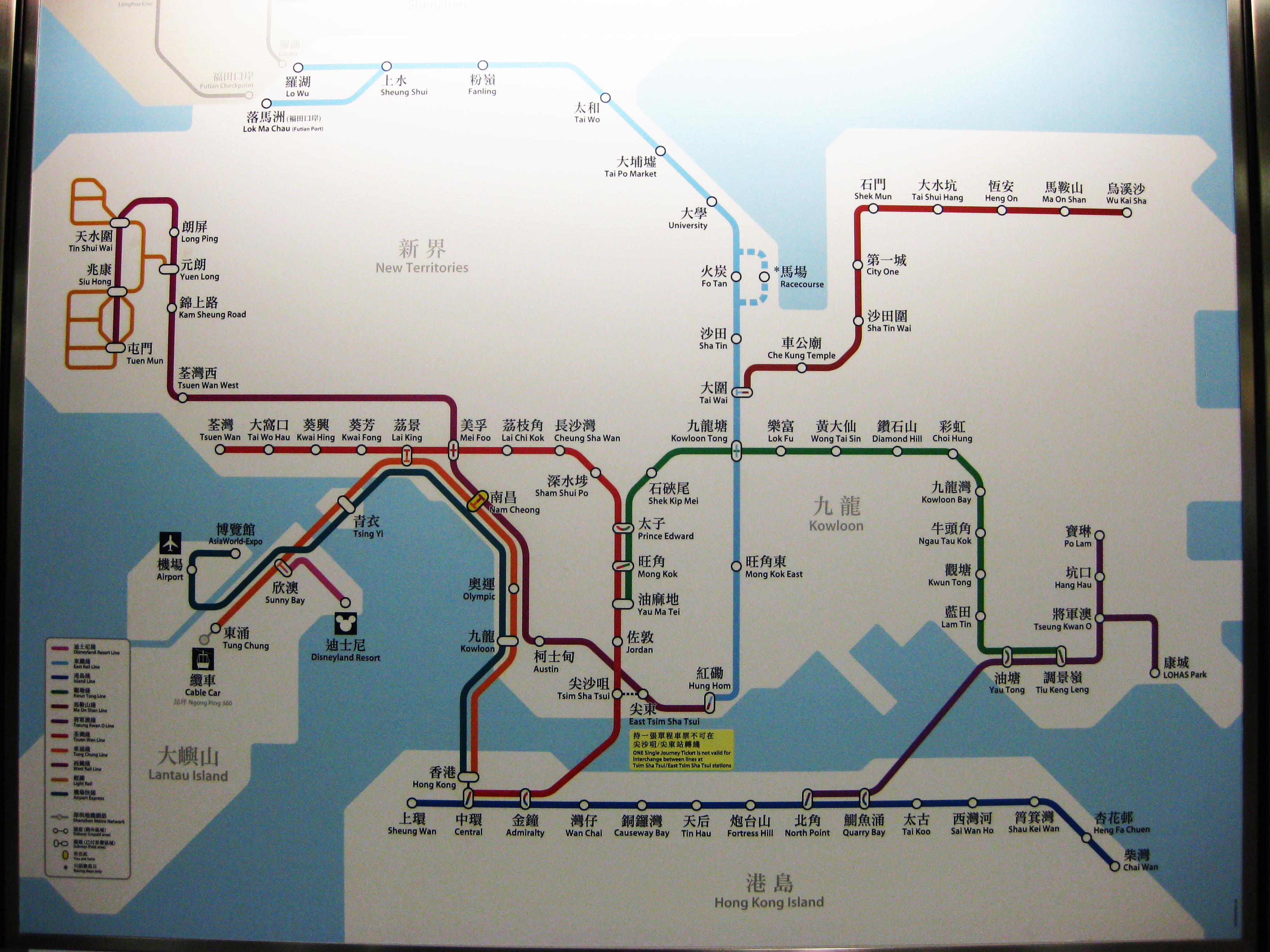 I spent about 45 minutes on the MTR, going from “Sheung Wan” (left-most point on the lower blue) to “Tseun Wan” (left-most point on the red.)