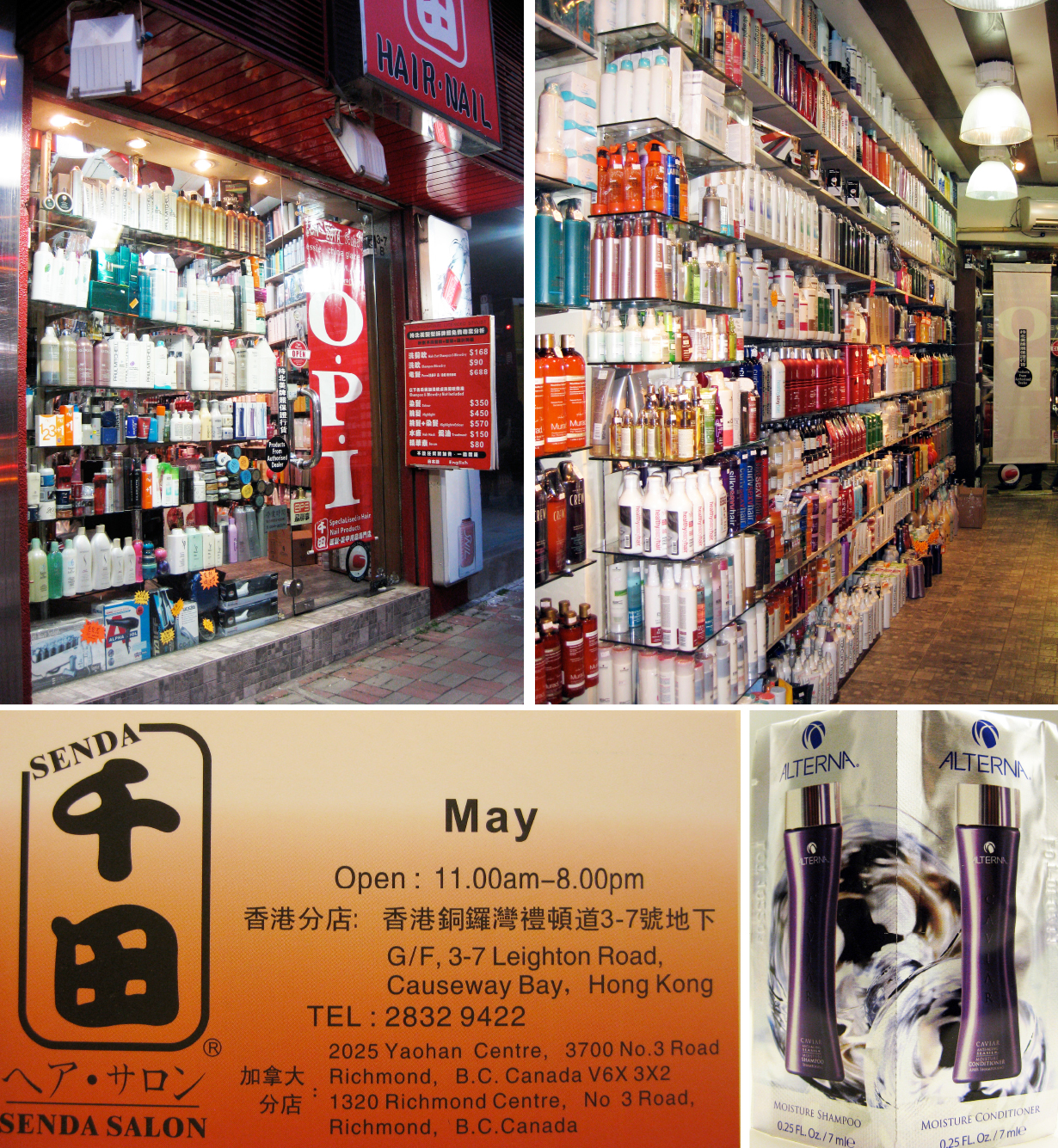 Senda Salon. G/F, 3–7 Leighton Road, Causeway Bay  tel. 2832-9422 Open 11a–8p.